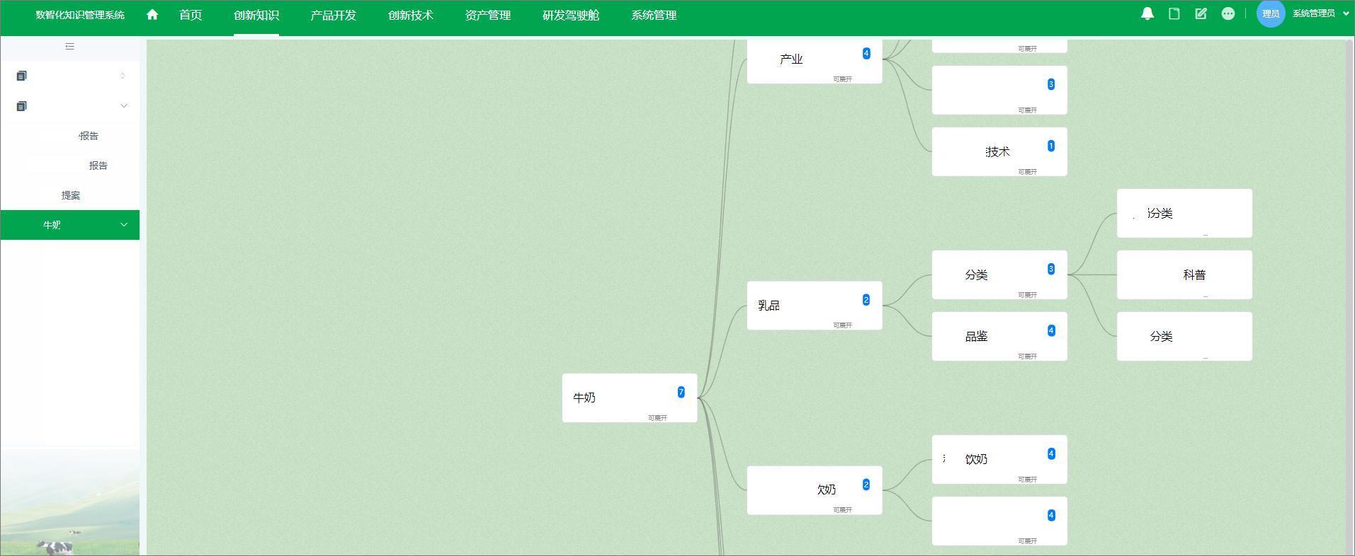 建立统一的知识仓库,围绕常温奶业务架构建立完整的知识目录结构,对不同目录下知识文档进行权限控制、版本控制、模板控制、编号控制,符合知识文档安全保障及合规保障的需要,并以思维导图方式呈现业务知识目录结构。