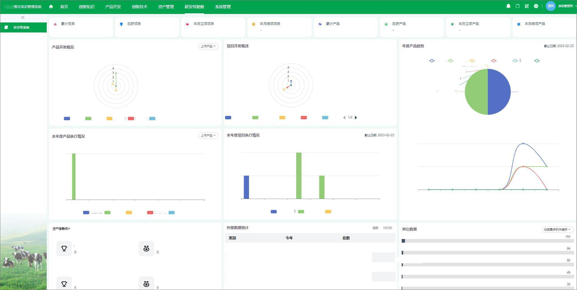 针对研发的不同类型的知识资源、用户的知识分享贡献等进行全面的数据统计,形成研发知识管理驾驶舱,为知识体系的创新优化提供数据基础。