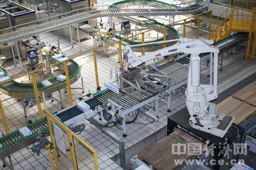 三元公司自主研发绰号“白美人”的码垛机器人。中国经济网记者 韩肖摄