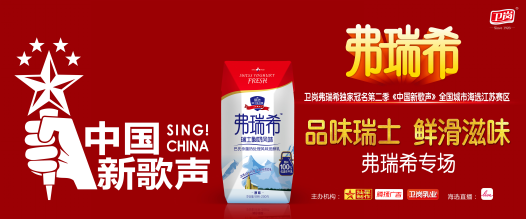 《中国新歌声》一直以来致力于打造中国特色音乐,是中国年轻音乐人实现梦想的大舞台,而弗瑞希作为卫岗乳业旗下的高品质酸奶,更是受到越来越多年轻人的青睐,此次再度联手《中国新歌声》江苏赛区海选,将更好地实现弗瑞希与音乐的融合,为品牌注入更多的新鲜活力,让大家享受音乐的同时,感受弗瑞希的独特魅力。