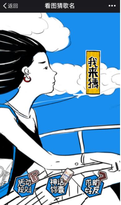 其次,确定跨界活动的形式。在确定了差异与共同点以后,创意的落地往往是最难的。因为它既要考虑到活动的可行性,也要考虑到活动的目的性。天友乳业给我们做了一个参考答案:通过当下年轻人喜欢的手绘风,结合“看图猜歌名”的游戏,将产品植入到游戏里。H5游戏、手绘都是一种可视化的存在,它们的组合也成功地将“超级IP”和自家产品结合起来。而“看图猜歌名”的形式是整个音乐营销的核心和点睛之笔。