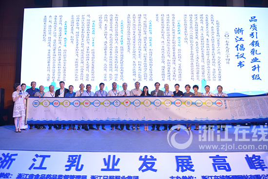浙江在线10月12日讯(浙江在线评论员 方扬帆)9月底,一场名为“浙江乳业发展高峰论坛”的活动在杭州举行。会上,娃哈哈、伊利、蒙牛、雅培、贝因美等浙江19家乳制品企业大佬共商乳业发展大计,并现场发布《“品质引领乳业升级的‘浙江倡议’》。这场由浙江省食品药品监督管理局和浙江日报报业集团联合发起的活动,既拉近了监管部门与企业间的距离,企业间交流了质量管理经验,同时也为消费者解答了关于乳制品的核心问题。