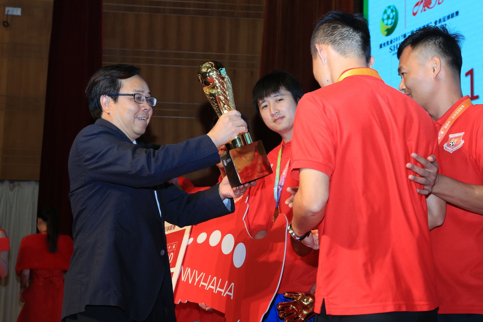 12月2日下午,晨光乳业2017第二届“深圳杯”业余足球联赛颁奖仪式在特区报业大厦会堂举行。深圳市委常委、宣传部长李小甘,深圳市文体旅游局局长张合运,深圳市文体旅游局办公室主任吴志伟,深圳市文体旅游局群体处处长解汝成,深圳市晨光乳业有限公司董事长兼总经理助理、品牌创新中心负责人吴宝龙,深圳市足球协会常务副主席兼秘书长赵亮,深圳市朝向集团有限公司总经理陈朝行等出席颁奖典礼并分别给优胜球队和个人颁奖。