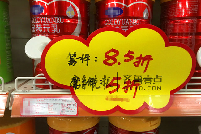 在新城一家连锁超市奶粉货架前,齐鲁晚报·齐鲁壹点记者看到,货架上大部分的奶粉挂着特殊牌子促销,某品牌一款2段婴儿配方奶粉原价268元,现价160.8元销售。更有品牌为了促销,打出“第一件8.5折,第二件5折”的促销挂牌。