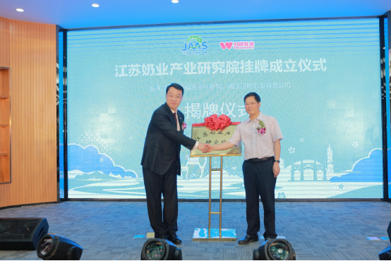 ▲双方领导为江苏奶业产业研究院揭牌