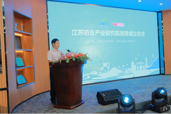 上午9时30分,江苏奶业产业研究院揭牌仪式开始。江苏奶业产业研究院院长仲跻峰、卫岗乳业董事长、产业研究院理事长白元龙、江苏省农业科学院院长易中懿和江苏省农委畜牧业处处长杨瑛分别上台致辞。