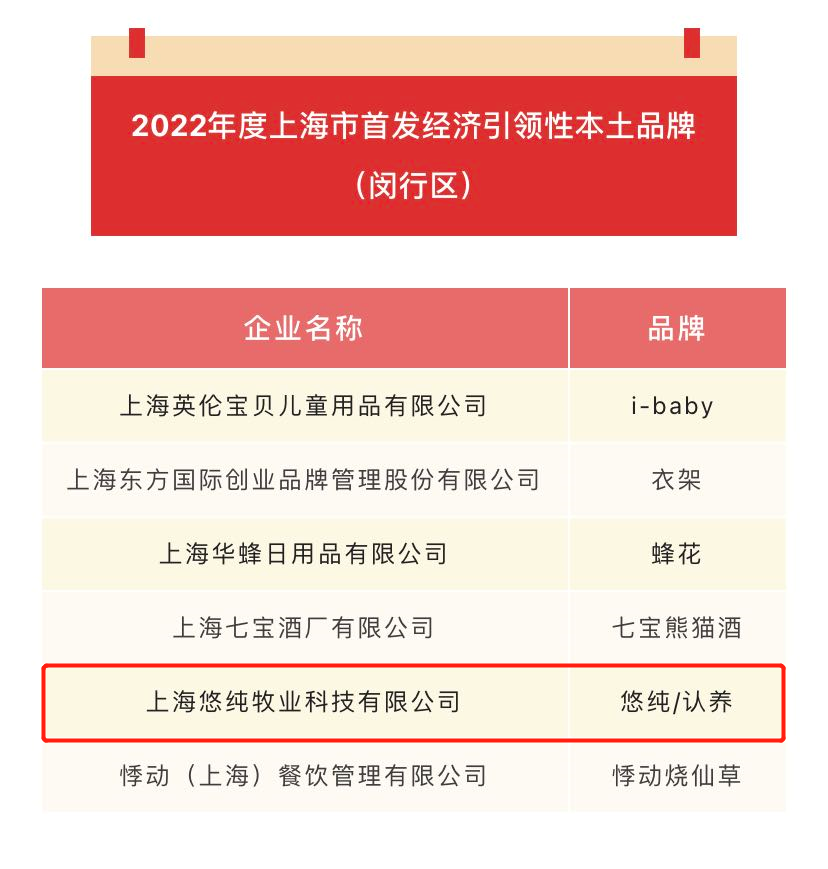 在近期发布的2022年度上海市首发经济引领性本土品牌名单中,位于梅陇镇的上海悠纯牧业科技有限公司榜上有名。