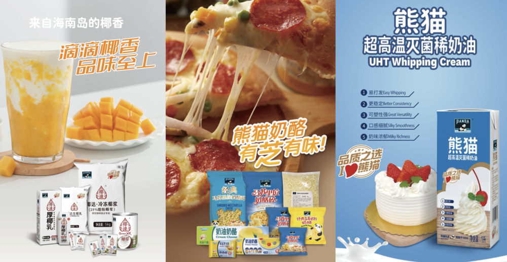 据悉,熊猫乳品集团主要产品包括调制甜炼乳、全脂甜炼乳、调制淡炼乳、全脂淡炼乳、淡奶、淡奶油、马苏里拉奶酪等。近两年也相继推出了厚椰乳、奶油奶酪、芝士片、奶酪棒等新品。