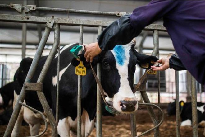 △ 给每一头奶牛都佩戴智能监测设备“牛脖环”