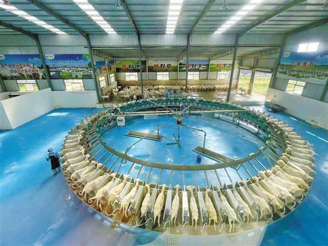 红星美羚奶山羊良种繁育园区的转盘式挤奶器。向斌悉心照料小羊羔。本报记者 穆骋文/图富平县地处关中平原和陕北高原的过渡地带,是世界公认的奶山羊养殖优生区和黄金奶源带,也是全国发展羊乳加工最早的地区,有上百年的奶山羊养殖历史。作为“中国羊乳之都”和“奶山...
